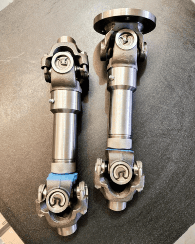 Recuperação de cardans danificados ou desgastados: substituição de cruzetas, luvas, ponteiras, tubos, flanges, garfos e rolamentos;