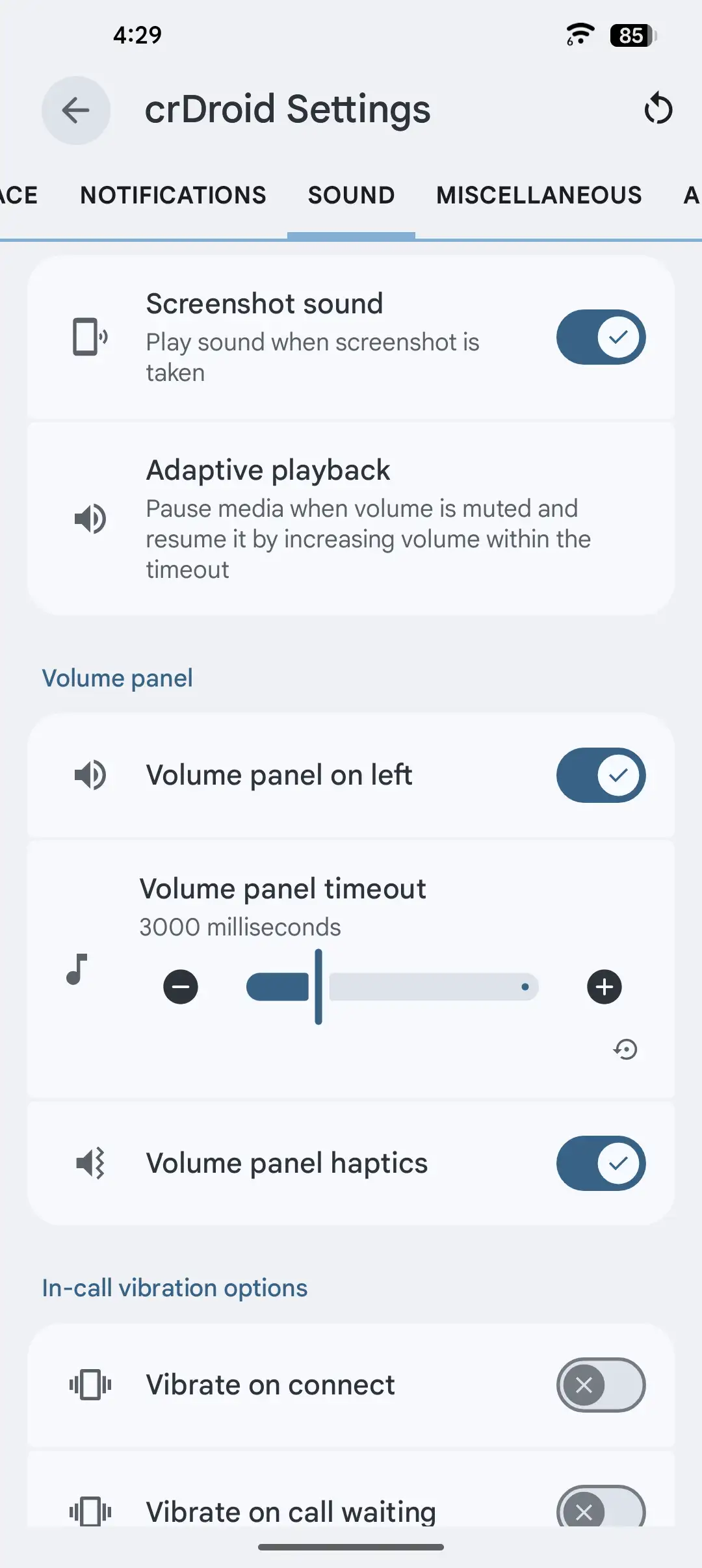 Some crDroid settings screenshots so you know what you can customize on the go