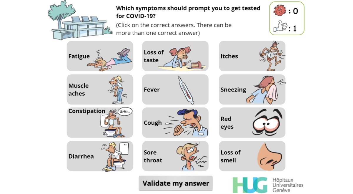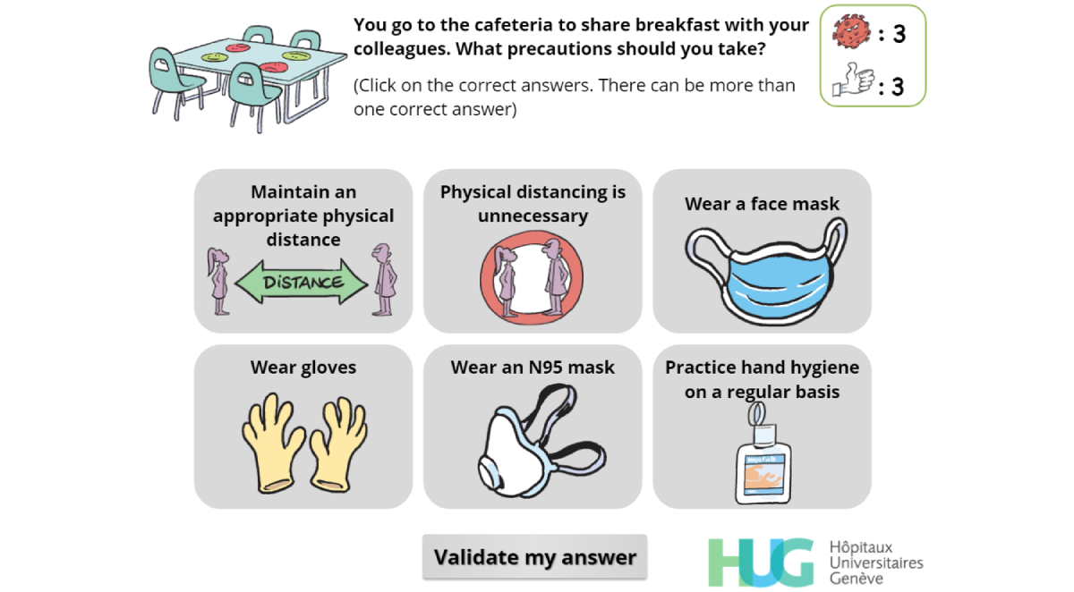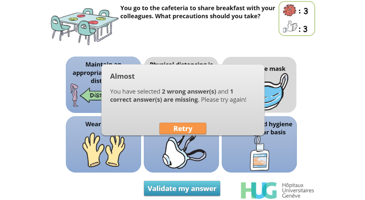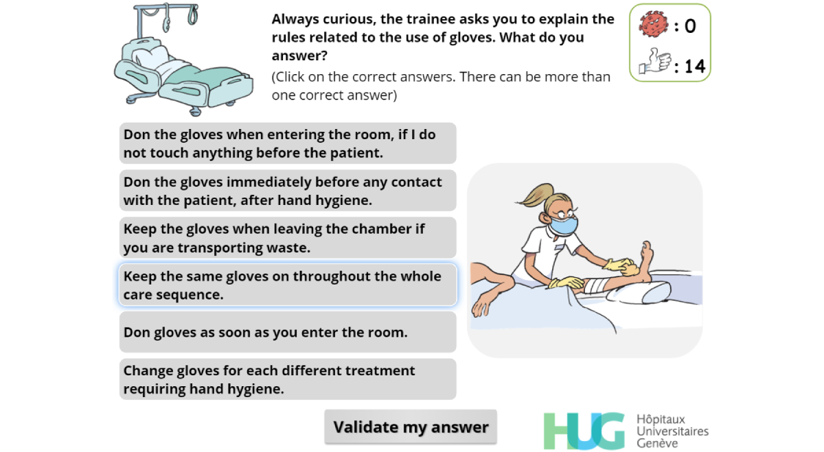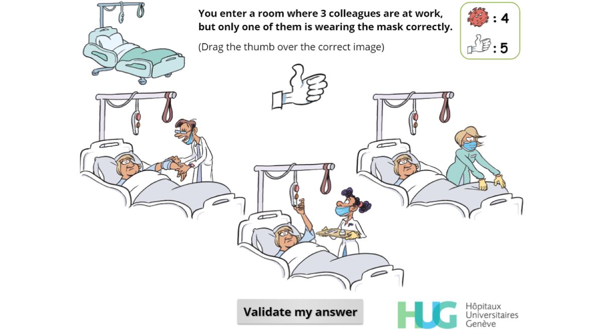 Copyright©Mélanie Suppan, Gaud Catho, Tomás Robalo Nunes, Valérie Sauvan, Monique Perez, Christophe Graf, Didier Pittet, Stephan Harbarth, Mohamed Abbas, Laurent Suppan. Originally published in JMIR Serious Games (http://games.jmir.org), 03.12.2020.