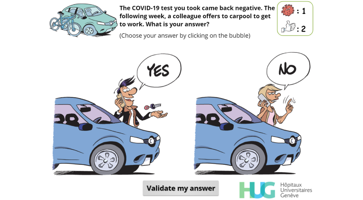 Since knowledge regarding SARS-CoV-2 transmission mechanisms is evolving quickly, this serious game could be obsolete in a matter of months or less. This limitation is however relative as the platform used to develop this serious game is quite flexible and should allow us to rapidly update the game.