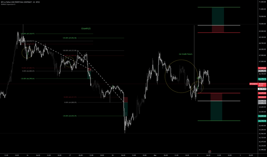 The Range Expansion X is a daily range expansion framework built around the previous day’s high–low structure. It automatically projects structured entry, stop loss, and take profit levels using Fibonacci-based calculations derived from the prior session’s range.