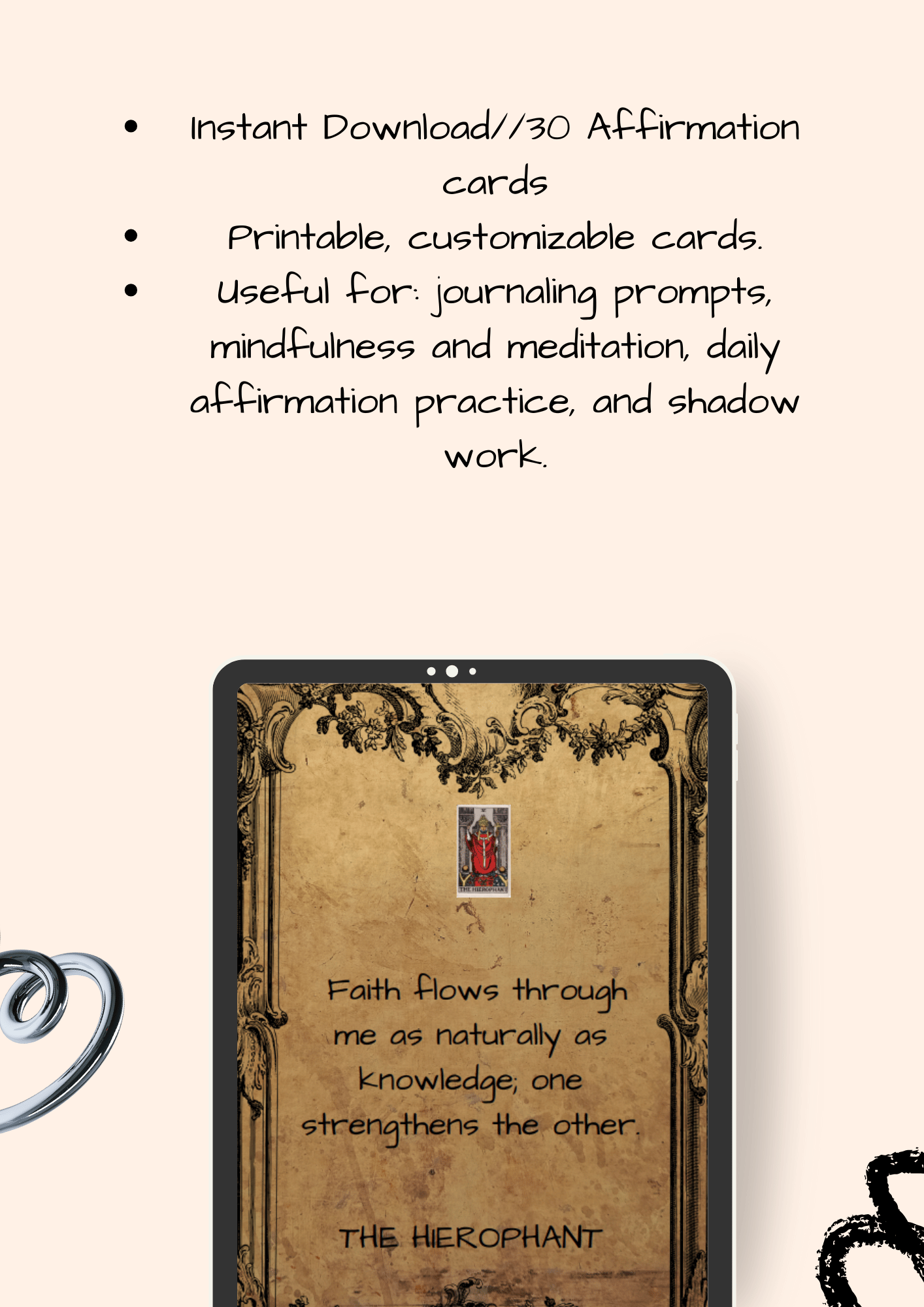 Step into your sacred role as teacher, seeker, and spiritual guide with The Hierophant, a powerful digital affirmation card deck inspired by the Major Arcana. Designed for those on a path of knowledge, faith, and higher purpose, this deck channels the energy of divine order, sacred truth, and spiritual devotion.