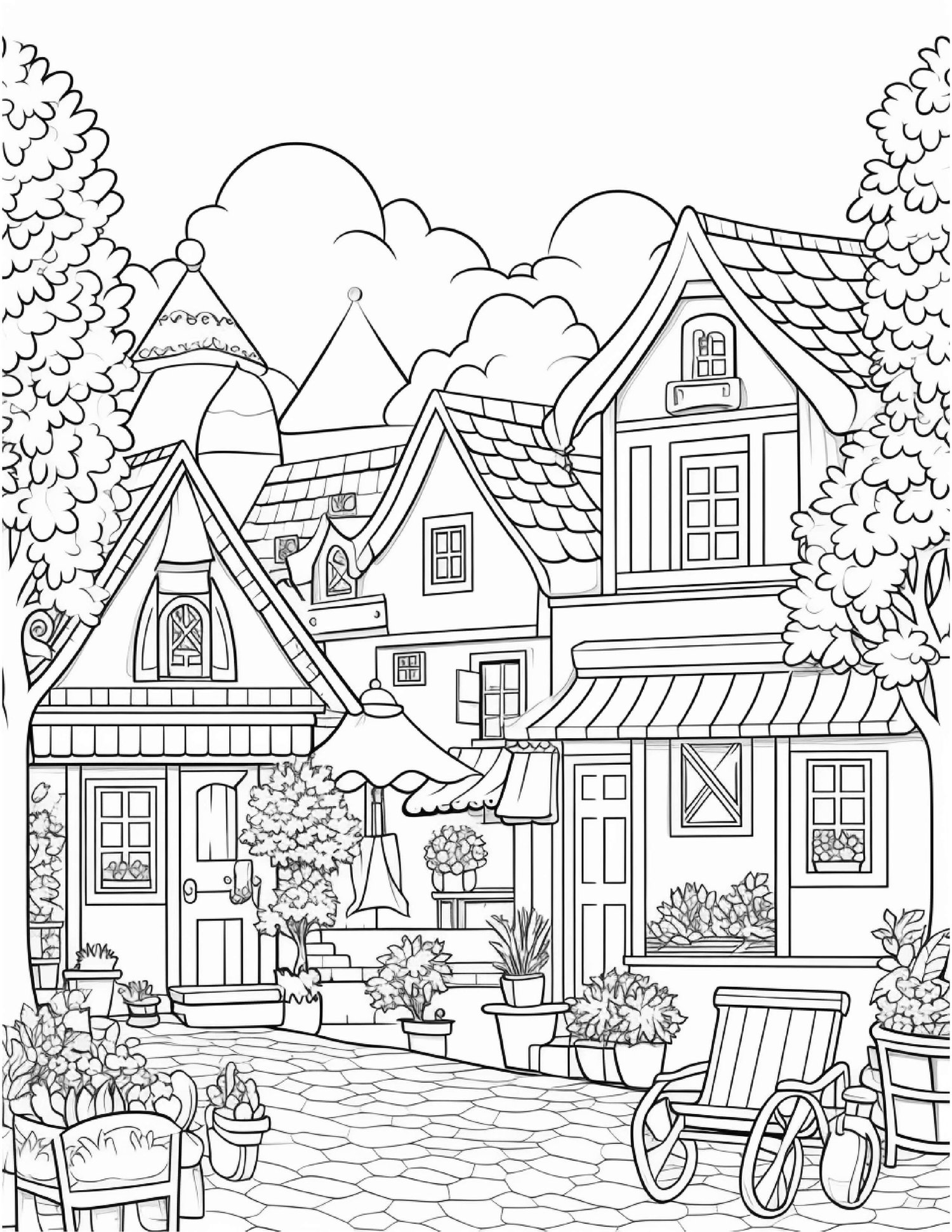 - Stress Relief: Coloring has been shown to reduce stress and promote relaxation. Immerse yourself in the world of a Charming Village and let your creativity flow freely.