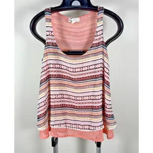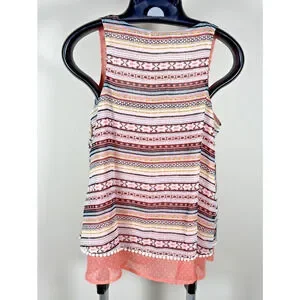 About a Girl Layered Boho Aztec Peach Polka Dot Pom Pom Hem Tank Striped Sz XS