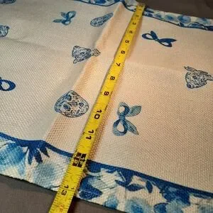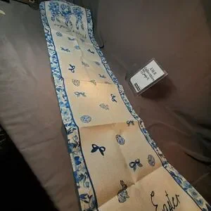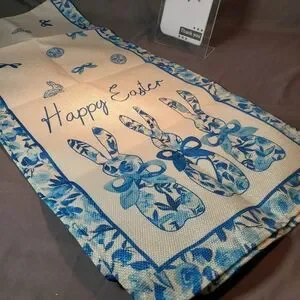 Blue porcelain bunny, happy Easter table runner 13x60 inch