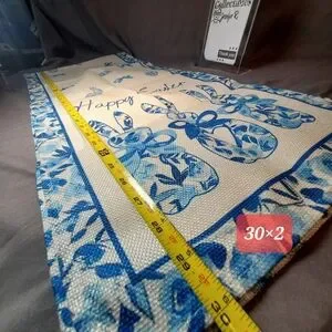 happy easter 13x60 inch table runner. Blue Porcelain Bunny Rabbit Happy Easter Table Runner,Seasonal Kitchen Dining Table Decoration for Home Party Decor