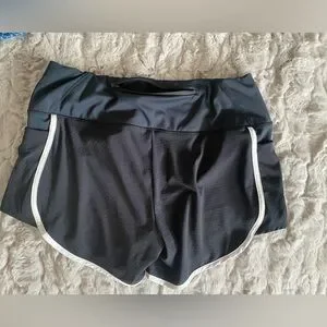 Sleek black athletic shorts. White trim adds contrast. Perfect for running or workouts.Inner liner short.