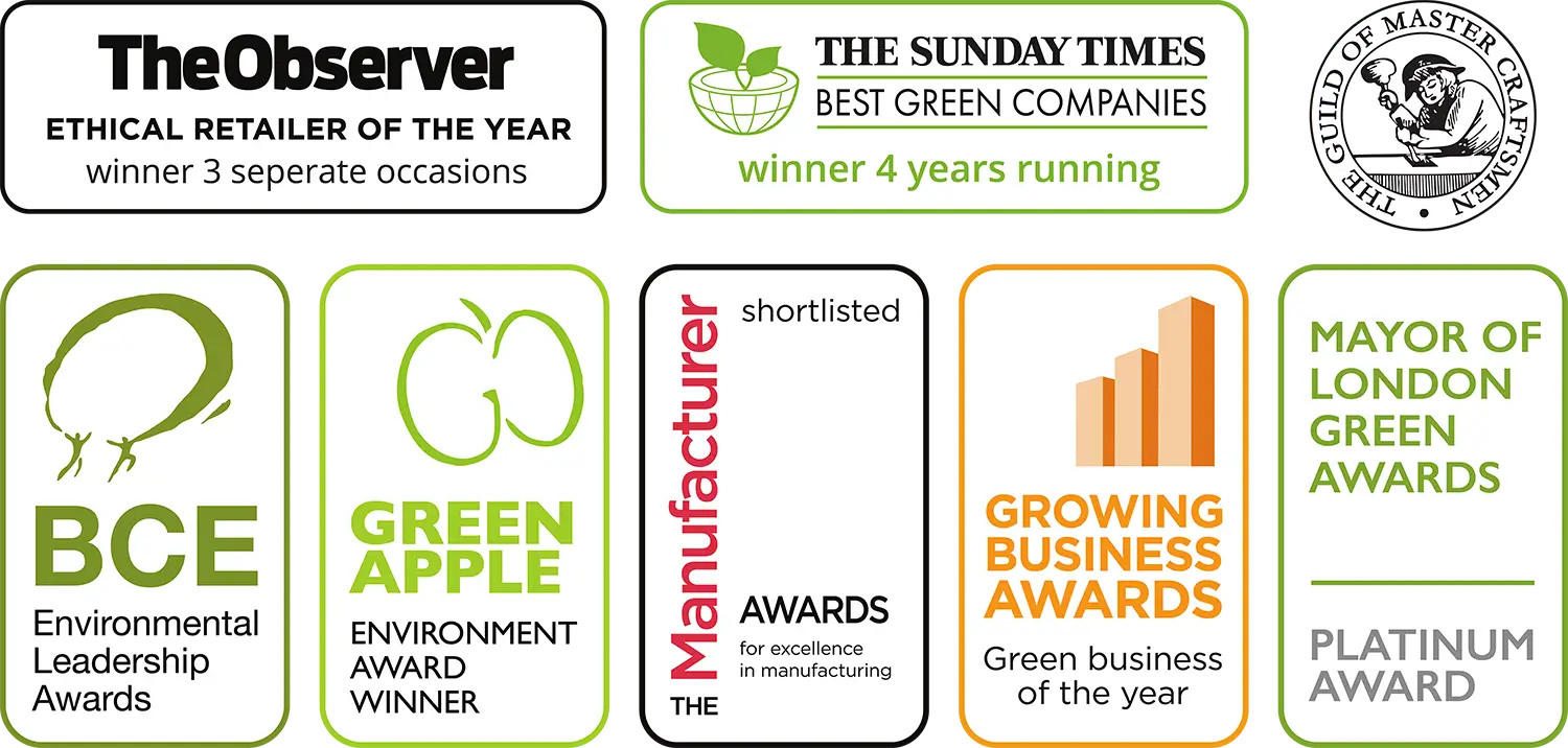 Organic wool, quality springs, no foams & no latex (rubber) mattress layers. Just natural fillers with natural anti-allergens and virtually no VOC toxic off-gassing. Water-based stains and finishes on all our FSC wood products - built to last & excellent value